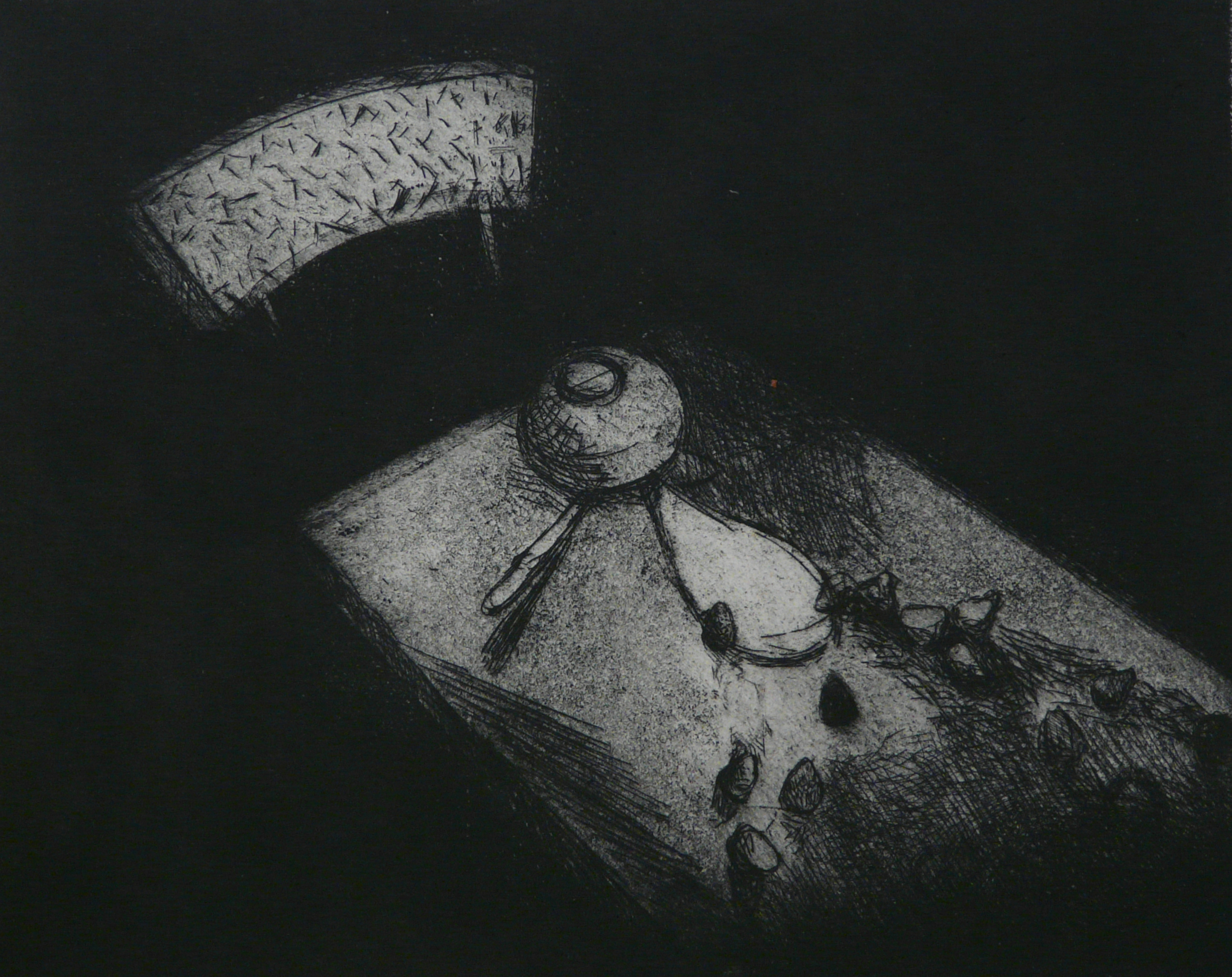 Spilt Strawberries & Cream II. 2019 Etching & Aquatint. Plate: 20cm x 25cm. Paper: 34cm x 38cm. Edition of 10
